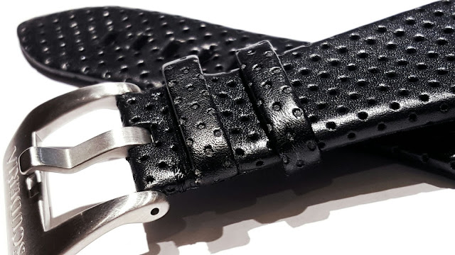 ベルトの色違いや素材違いでの展開もありますが、一番メジャーなのが黒のパンチングレザーバージョン。
